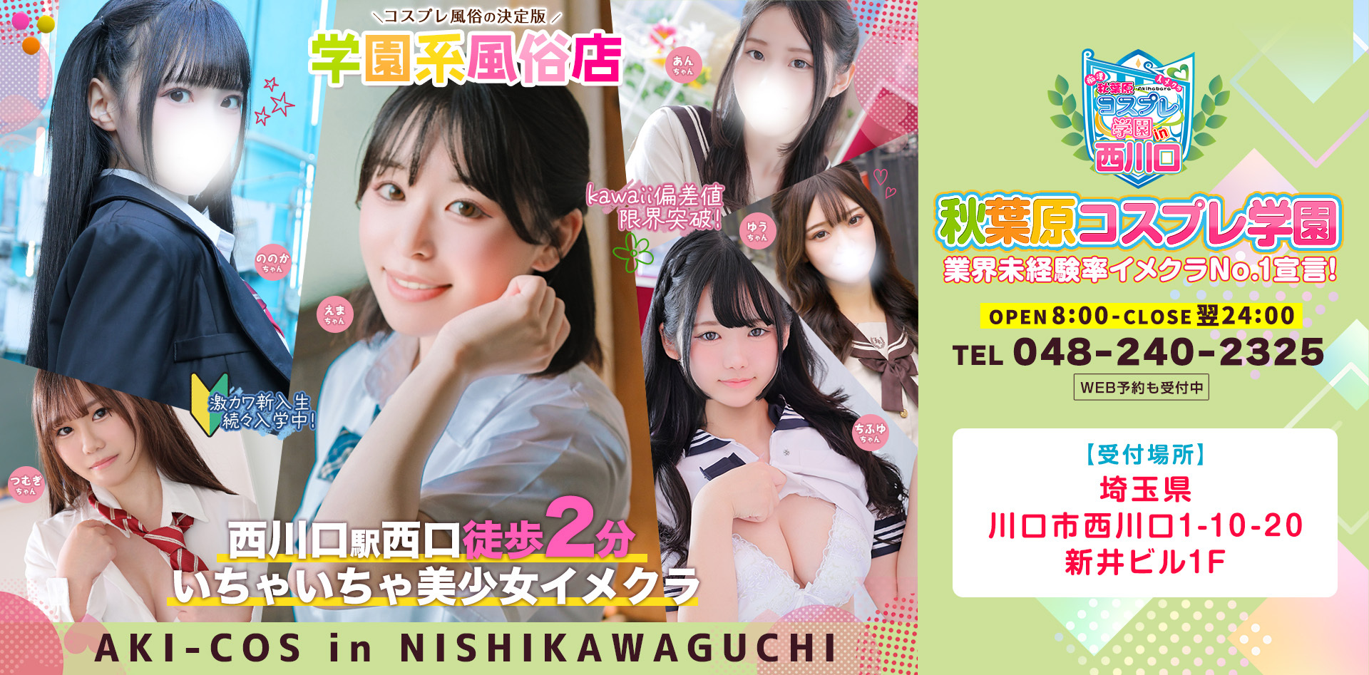 西川口にある風俗店【秋葉原コスプレ学園in西川口】は、アイドル並みの、素人の女の子と、コスチュームプレイで遊んでいただける店舗型の風俗店(イメクラ・ヘルス)になります!